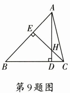 9. 如图,在$\triangle ABC$中,$AD⊥BC$,$CE⊥AB$,且$AD$与$CE$交于点$H$,若$∠B = 50^{\circ}$,则$∠AHC$的度数为_。