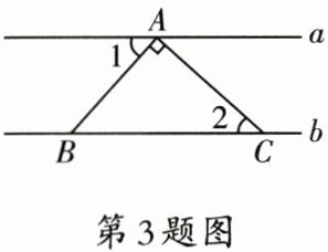 3. 如图,$Rt\triangle ABC$的直角顶点$A$在直线$a$上,斜边$BC$在直线$b$上,若$a// b$,$∠1 = 55^{\circ}$,则$∠2$的度数是(