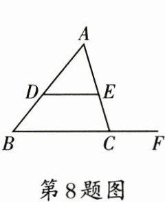 8. 如图,$DE// BC$,$CF$为$BC$的延长线,若$∠ADE = 50^{\circ}$,$∠ACF = 110^{\circ}$,则$∠A =$