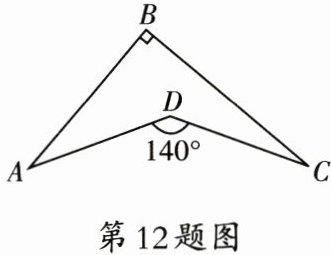 12.(8分)如图,$AB⊥BC$,$∠C = 20^{\circ}$,$∠ADC = 140^{\circ}$,求$∠A$的度数。