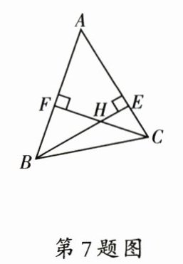 7. 如图, 已知 $ BE,CF $ 分别为 $ \triangle ABC $ 的两条高, $ BE $ 和 $ CF $ 相交于点 $ H $, 若 $ \angle A = 50^{\circ} $, 则 $ \angle BHC $ 的大小为