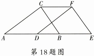18. (8 分) 如图, 在 $ \triangle ABC $ 中, 将 $ \triangle ABC $ 沿 $ AB $ 方向向右平移 $ 3\ cm $ 得到 $ \triangle DEF $.