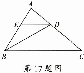 17. (8 分) 如图, 在 $ \triangle ABC $ 中, $ BD $ 是 $ \angle ABC $ 的平分线, $ DE // BC $ 交 $ AB $ 于点 $ E $, $ \angle A = 60^{\circ} $, $ \angle BDC = 100^{\circ} $, 求 $ \triangle BDE $ 各内角的度数.
