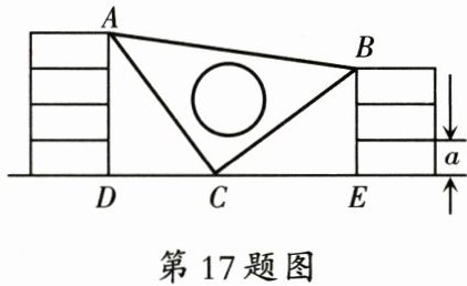17. (8分)课间,李明拿着老师的等腰直角三角板玩,不小心掉到两堆砖块之间,如图所示.