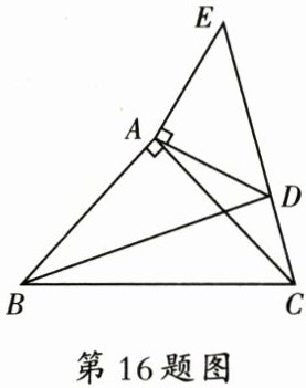 16. (8分)如图,在$\triangle ABC$和$\triangle ADE$中,$\angle BAC = \angle DAE = 90°$,$AB = AC$,$AD = AE$,点$C$,$D$,$E$三点在同一直线上,连接$BD$.