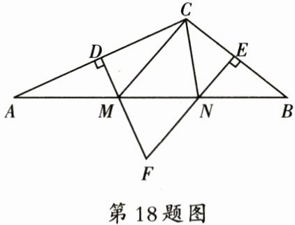 18. (10分)如图,在$\triangle ABC$中,$DM$,$EN$分别垂直平分$AC$和$BC$,交$AB$于$M$,$N$两点,$DM$与$EN$的延长线相交于点$F$。