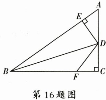 16. (8分)如图,在$\triangle ABC$中,$\angle C = 90^{\circ}$,$BD$是$\angle ABC$的平分线,$DE \perp AB$于点$E$,点$F$在$BC$上,连接$DF$,且$AD = DF$。