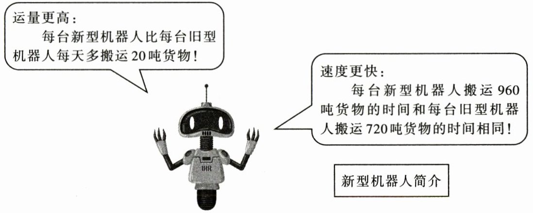 19.解:设每台新型机器人每天搬运的货物量为x吨,则每台旧型机器人每天搬运的货物量为(x-20)吨,
