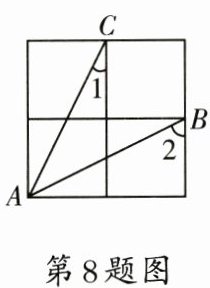 8. 在如图所示的$2× 2$方格中,连接$AB$,$AC$,则$\angle 1+\angle 2=$