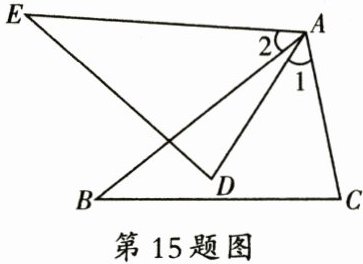 15. (6分)如图,已知$AB = AE$,$\angle 1 = \angle 2$,$\angle B = \angle E$.求证:$BC = ED$.