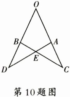 10. 如图,$OA = OB$,$OC = OD$,$\angle O = 50^{\circ}$,$\angle D = 35^{\circ}$,则$\angle AEC =$