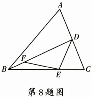 8. 如图,$\triangle DEF$的面积为1,且$AD = DC$,$BE = 2CE$,$DF = 3BF$,则$\triangle ABC$的面积为