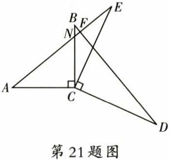 21. (9分)如图,$AC\perp BC$,$DC\perp EC$,$AC = BC$,$DC = EC$,$AE$与$BD$交于点$F$.