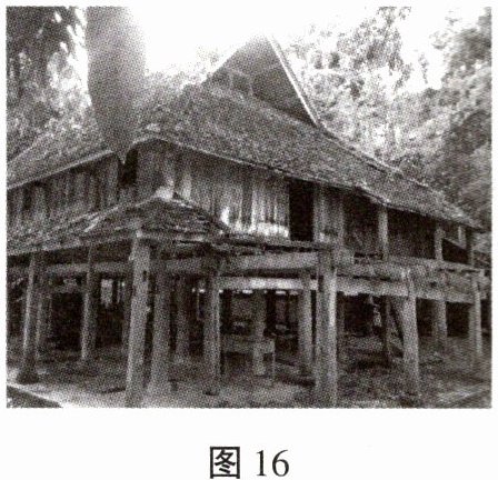 族,他们以竹木为材料建造房屋,底部架空,上层住人。图16为当地干栏式建筑示意图,请从气候角度分析该传统民居的形成原因(至少答出两点)。(4分)
