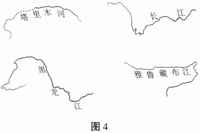 (2024·凉山州中考)一个国家河流径流量的大小,大体可以表明这个国家水资源的多少。图4为中国四条河流的干流示意图,图5为长江流量年变化曲线示意图。据此完成8—10题。