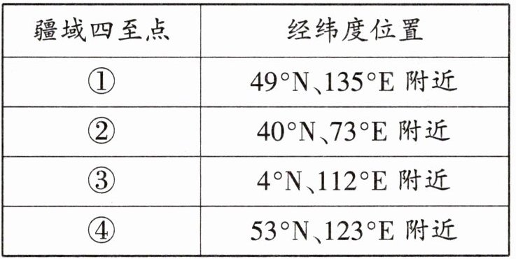 6. (2025·西安期末)表 1-1-3 为我国疆域四至点的经纬度位置表,其中③位于(