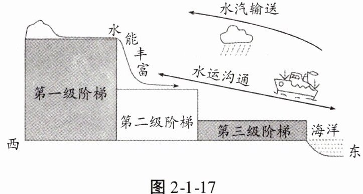 (4)对河流流向的影响:受地势影响,我国许多大河自西向东注入海洋。对水能资源的影响:河流流经阶梯交界处,落差大,水流速度快,水能资源丰富。