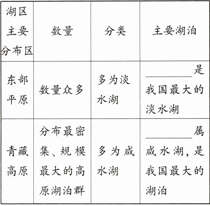 。(2) 两大湖区:结合教科书相关内容,填写表2-3-4。