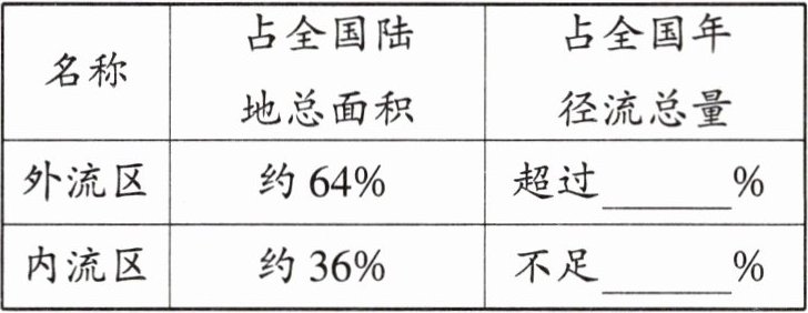 1. 外流区和内流区:结合教科书相关内容,填写表2-3-1。