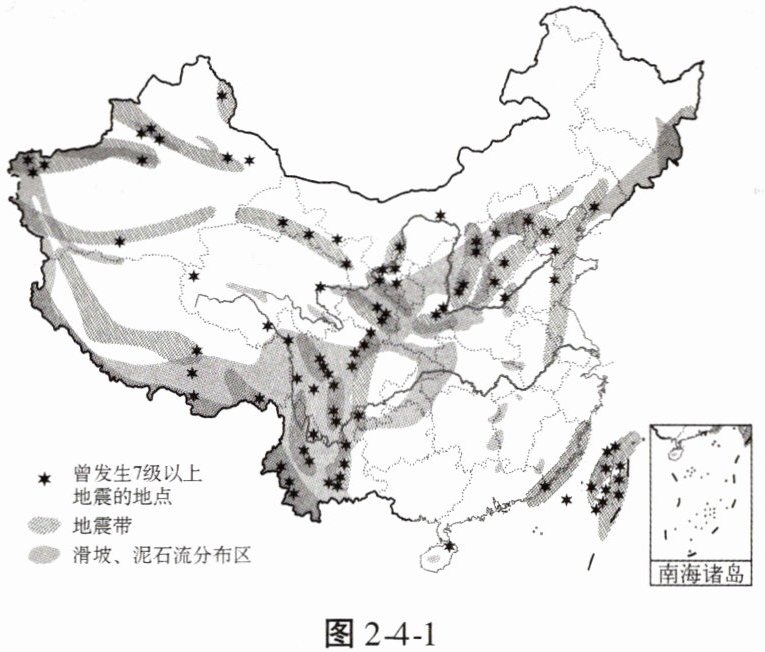 中国是地质灾害相对严重的国家。读图2-4-1,完成1—3题。