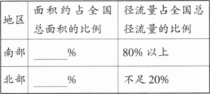 (1) 水土资源配合不协调:结合教科书相关内容,填写表 3 - 3 - 1。