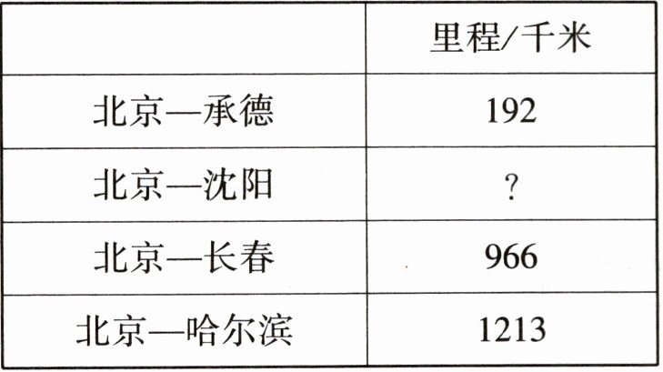 (3) 下面是“北京—哈尔滨”沿线主要车站的火车里程表。