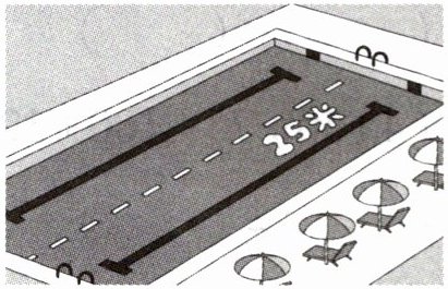 4. 游泳池泳道长 25 米,游 2 个来回游了多少米?