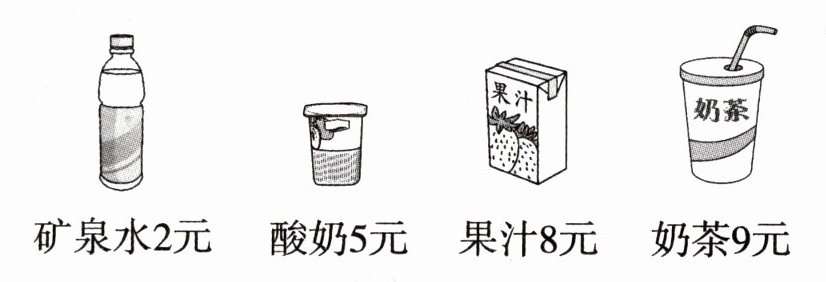 矿泉水2元 酸奶5元 果汁8元 奶茶9元