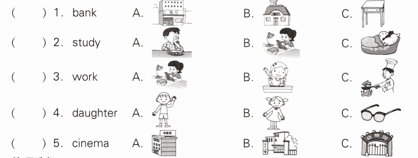 三、看图选出正确的单词或句子,并抄写在四线格里。