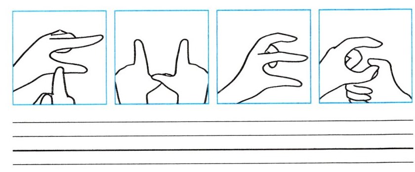 一、观察下列图片所代表的字母,并将字母的大小写形式写在四线三格上。