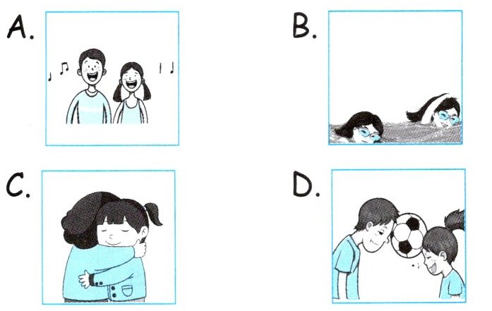 (一)依次序号:CDAB(二)hug—拥抱;play—玩耍;sing—唱歌;swim—游泳