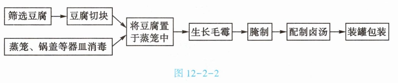 10. 腐乳是我国流传上千年的传统调味品,某生物学兴趣小组利用豆腐制作腐乳,过程如图 12-2-2 所示。回答下列问题。