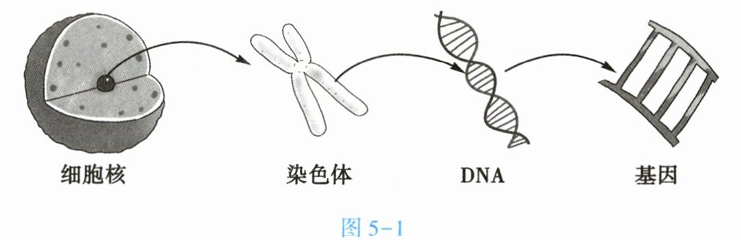 6. 如图5-1是细胞核、染色体、DNA和基因的示意图,下列相关叙述错误的是【 】