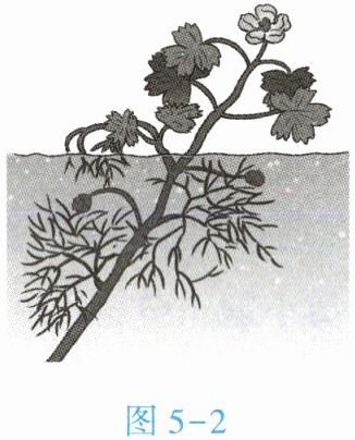 15. 许多遗传实验表明,一般环境条件的变化不易使基因型发生改变,表现型则容易受到环境条件的影响。如图5-2为同一株水毛茛生长在水中和水面的性状表现,这两种性状的不同说明【 】