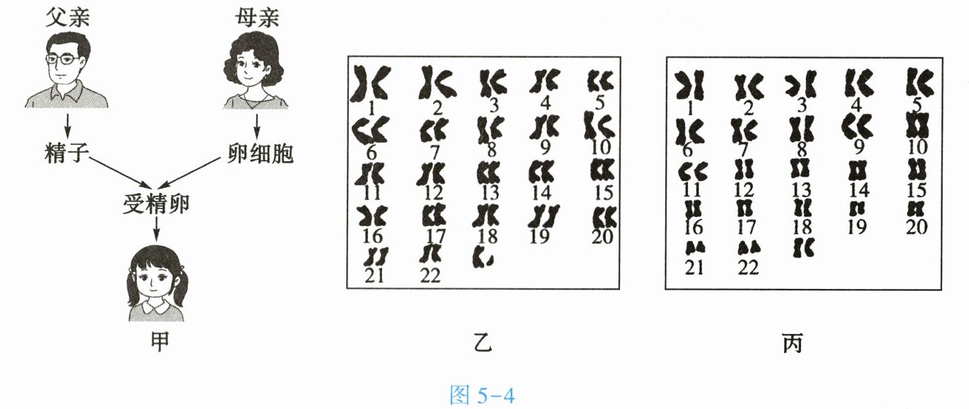 (3) 图甲中该女生的染色体图谱为图______(填"乙"或"丙"),若该父母再生一个孩子,也是女孩的概率是______。