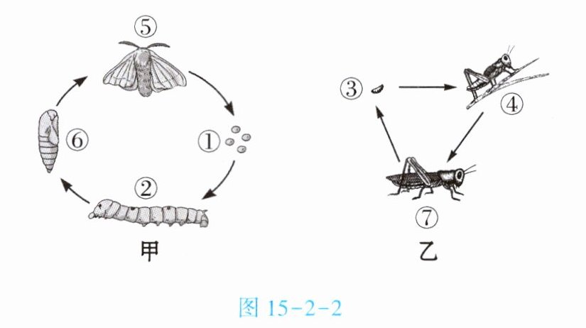 11. 生物通过生殖和发育使得生命世代相续,且生生不息,构成丰富多彩的生物世界。昆虫的生长发育过程如图 15 - 2 - 2 所示,请回答下列问题。