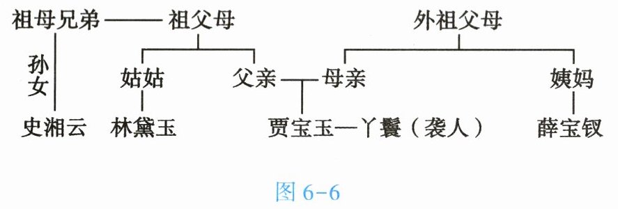 19. 《红楼梦》是以贾宝玉和林黛玉的爱情悲剧为主线的古典名著,书中人物众多,图 6 - 6 展示了部分人物与贾宝玉的关系。根据我国民法典规定,下列人物中可以与宝玉结婚的是