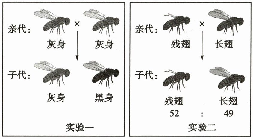 (2)根据实验一可判断______性状是显性性状。亲代灰身果蝇的基因组成是______。
