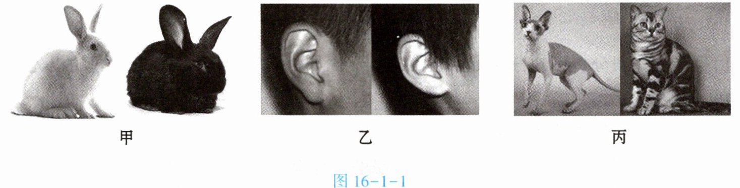 12. 人和生物体的每一种性状,往往有多种不同的表现类型。如图16-1-1为三种生物的相对性状。回答下列问题。