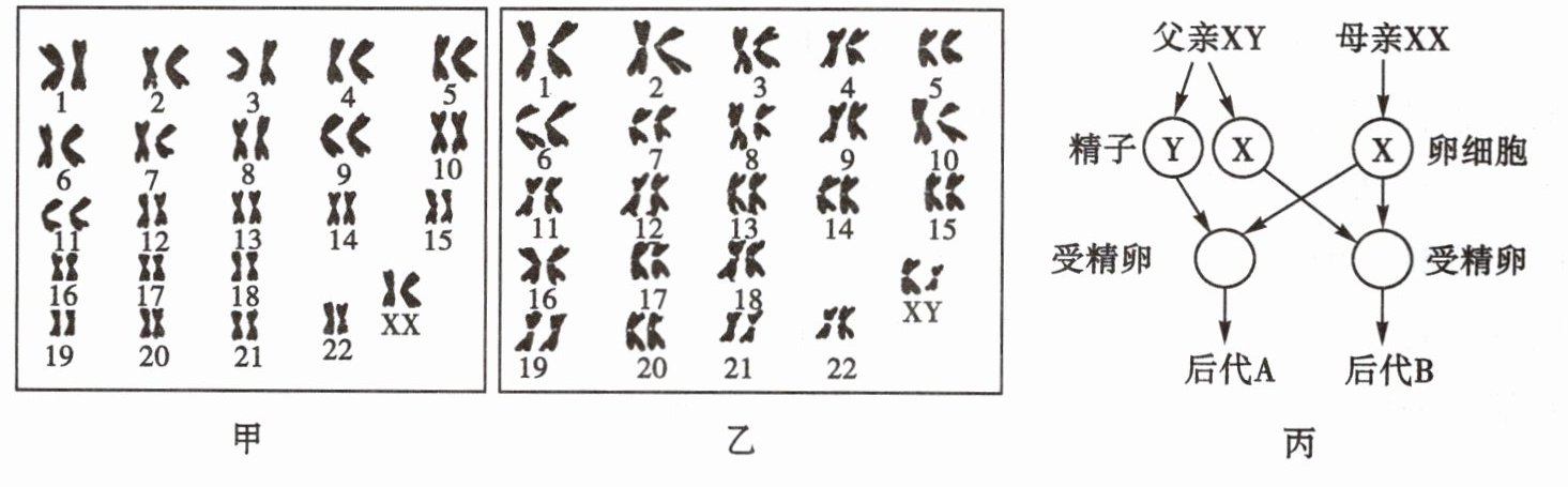 (2)图丙中后代A的染色体排序图为______(填“甲”或“乙”)图,能产生______种类型的生殖细胞。