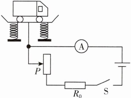 3. 如图是测量货车质量的地磅示意图,货车的质量可以通过电流表的示数转换测出,$R_{0}$为定值电阻。下列说法正确的是(