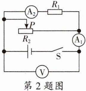 2. 如图所示,电源电压恒定,闭合开关$S$后,将滑动变阻器的滑片$P$由中点向左端滑动的过程中,下列说法中正确的是(