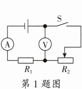 1. 在如图所示的电路中,电源电压保持不变,$R_{1}$为定值电阻,$R_{2}$为滑动变阻器。闭合开关$S$,当滑动变阻器的滑片向右移动时,电流表的示数