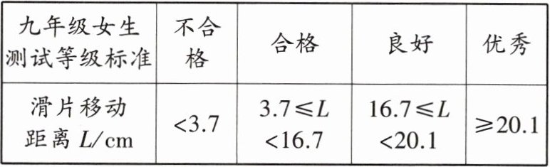 | 九年级女生测试等级标准 | 不合格 | 合格 | 良好 | 优秀 |