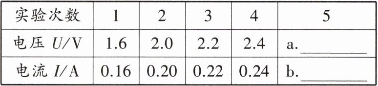 | 电压$U/V$ | $1.6$ | $2.0$ | $2.2$ | $2.4$ | a.______ |