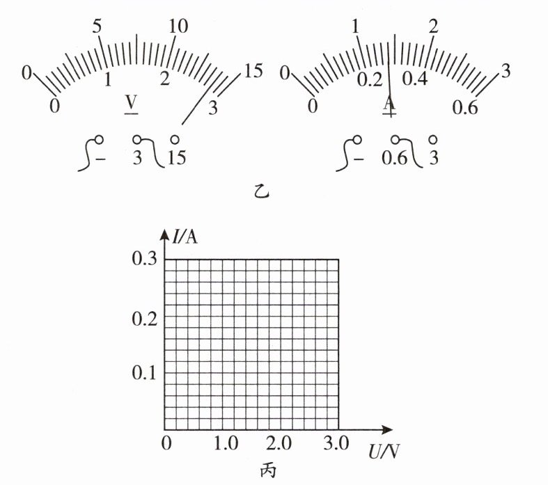 ③闭合开关,移动滑片,记录了如下数据。第$5$次的电压表和电流表的示数如图乙所示,请将示数填入表中。