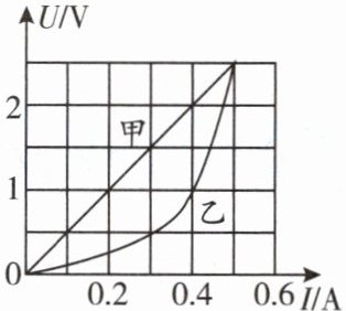 9. 如图是电阻甲和小灯泡乙的 $ U - I $ 图像,甲的电阻是
