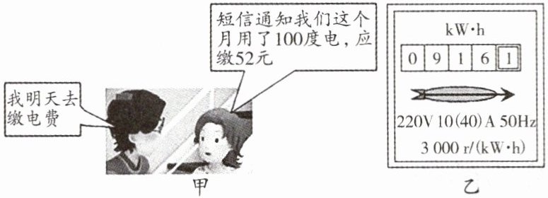 $ J $。(2)小林家上一个月底抄表时电能表的示数如图乙所示,则本月底电能表的示数应为