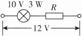 10. 把一个标有“$10V\ 3W$”的小灯泡和定值电阻$R串联后接在电压为12V$的电源上(如图所示),小灯泡恰能正常工作,此时小灯泡的电阻是