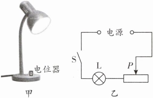 1. 如图甲所示为一盏调光台灯,其原理如图乙所示,电源电压一定,闭合 S,将滑片从左向右移动,灯泡两端的电压将
